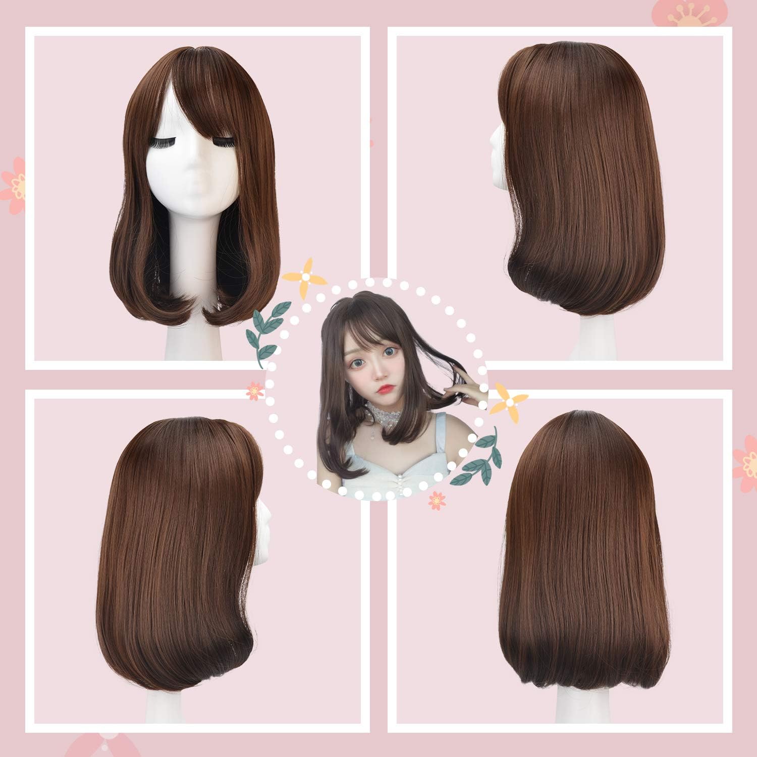 Amazon Feshfen ウィッグ かつら ミディアム セミロング サイドバング斜めバング フルウィッグ ウィッグ ロング レディース Wig ストレート Jカール 自然 医療用 小顔効果 ネット付き 耐熱 Dzz53 チョコブラウン フルウィッグ 通販